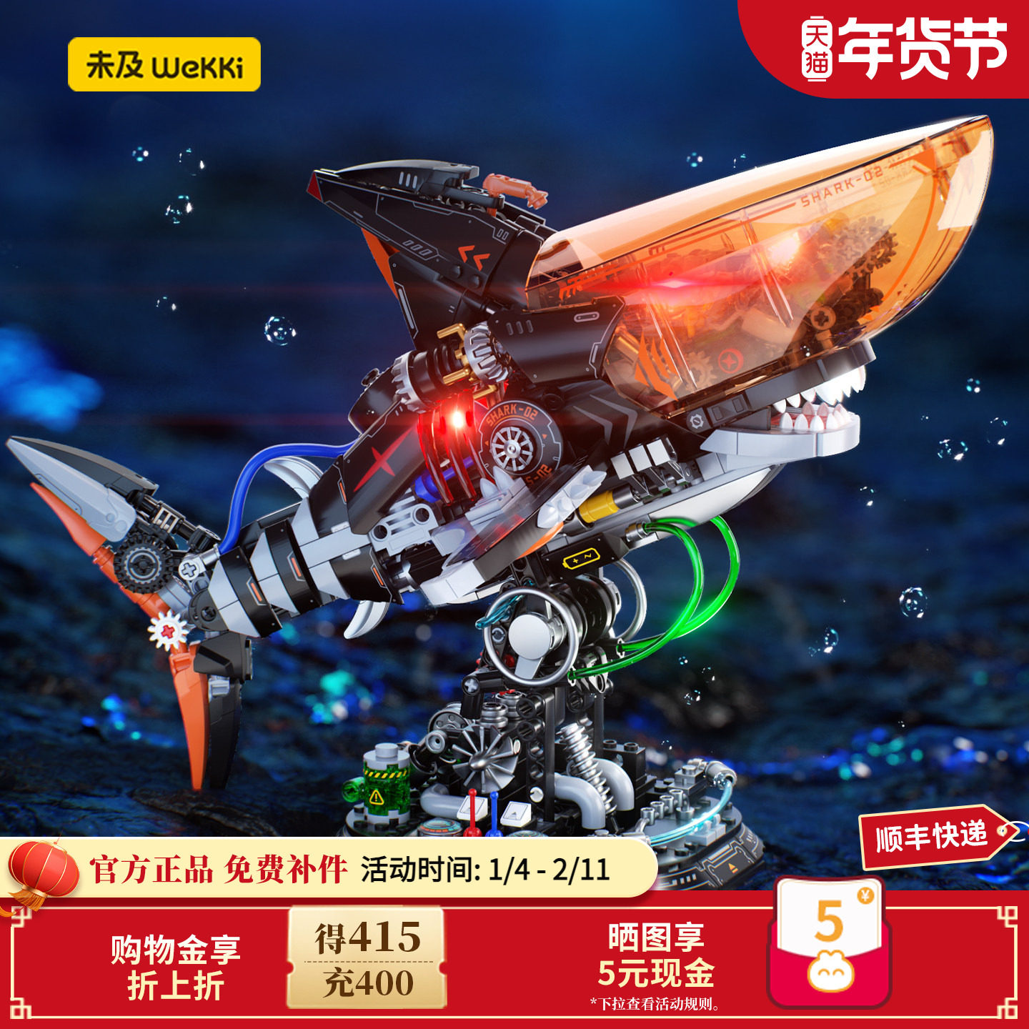【新年礼物】未及噬浪巨鲨鲨鱼国产拼装积木益智潮玩玩具摆件男生