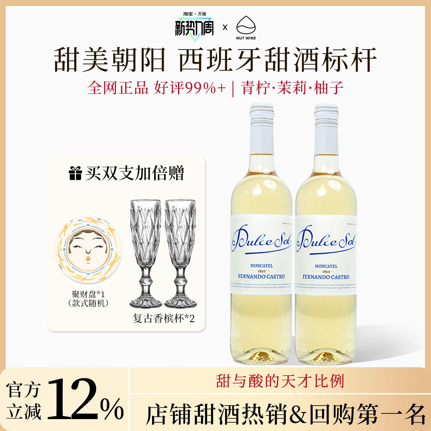 NutWine荔枝山竹冰甜美朝阳莫斯卡托微醺起泡开门红半甜白葡萄酒