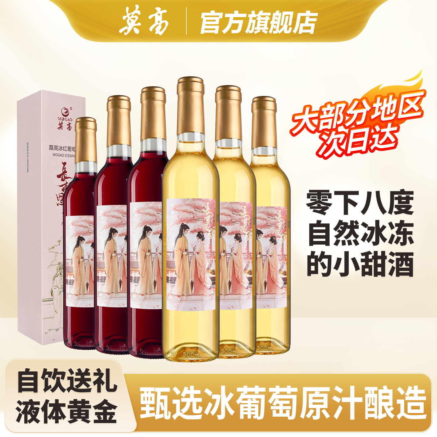 莫高冰酒 冰白甜葡萄酒甜型红酒 滴晶微醺甜果酒礼盒装 官方正品