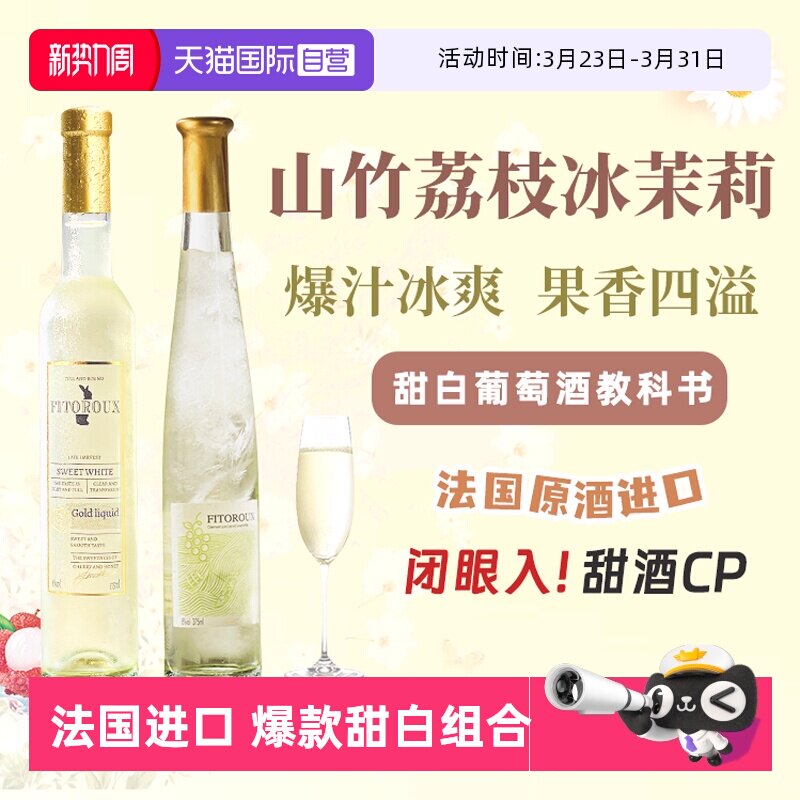 【自营】山竹冰茉莉法国原酒进口晚收甜白葡萄酒微醺礼盒赠香槟杯