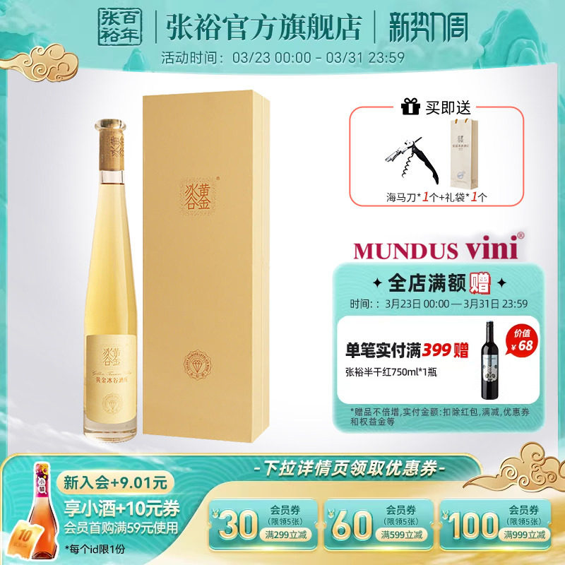 张裕葡萄酒黄金冰谷金钻级冰酒375mlx1瓶礼盒装甜型葡萄酒酒庄酒