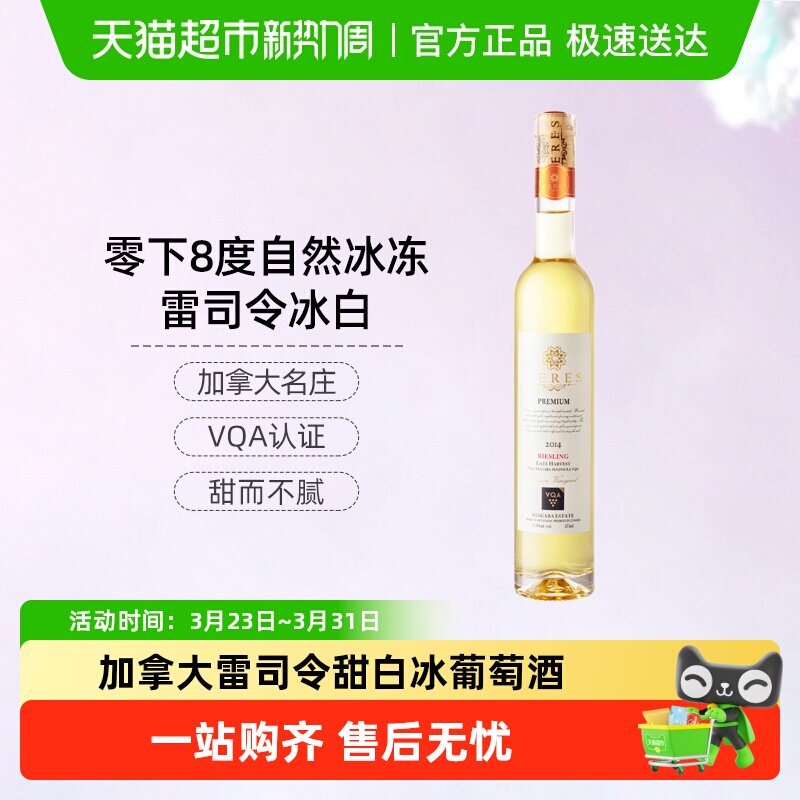 【自营】加拿大晚收冰白葡萄酒雷司令甜白葡萄酒女生甜酒赠香槟杯