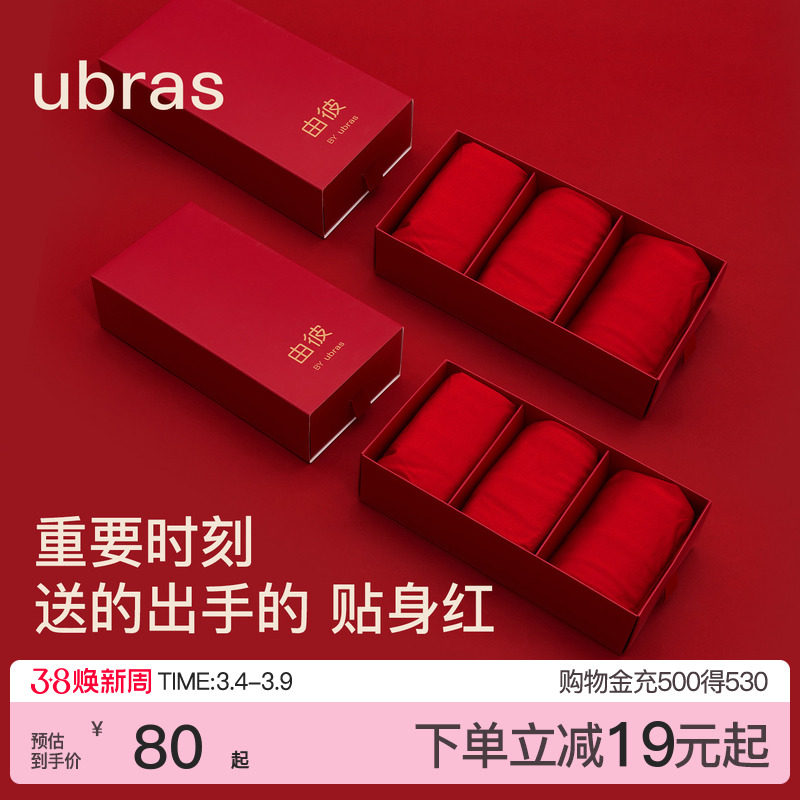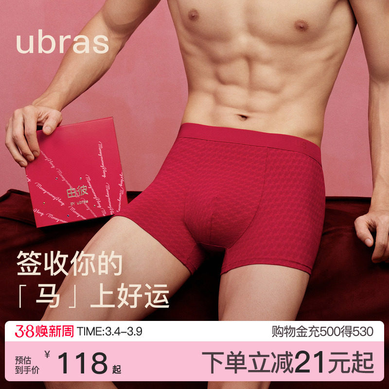 ubras本命年男士内裤女红色生肖马年结婚莫代尔四角纯棉情侣短裤