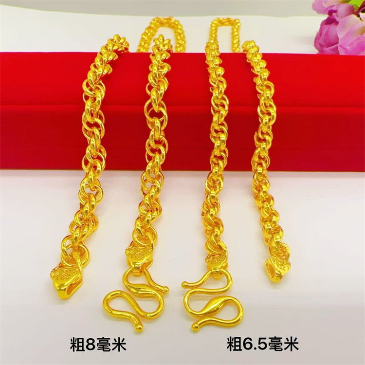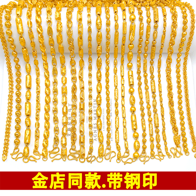 越南沙金项链男女空心麦子麻花老板链竹节橄榄金店同款情侣圆珠链