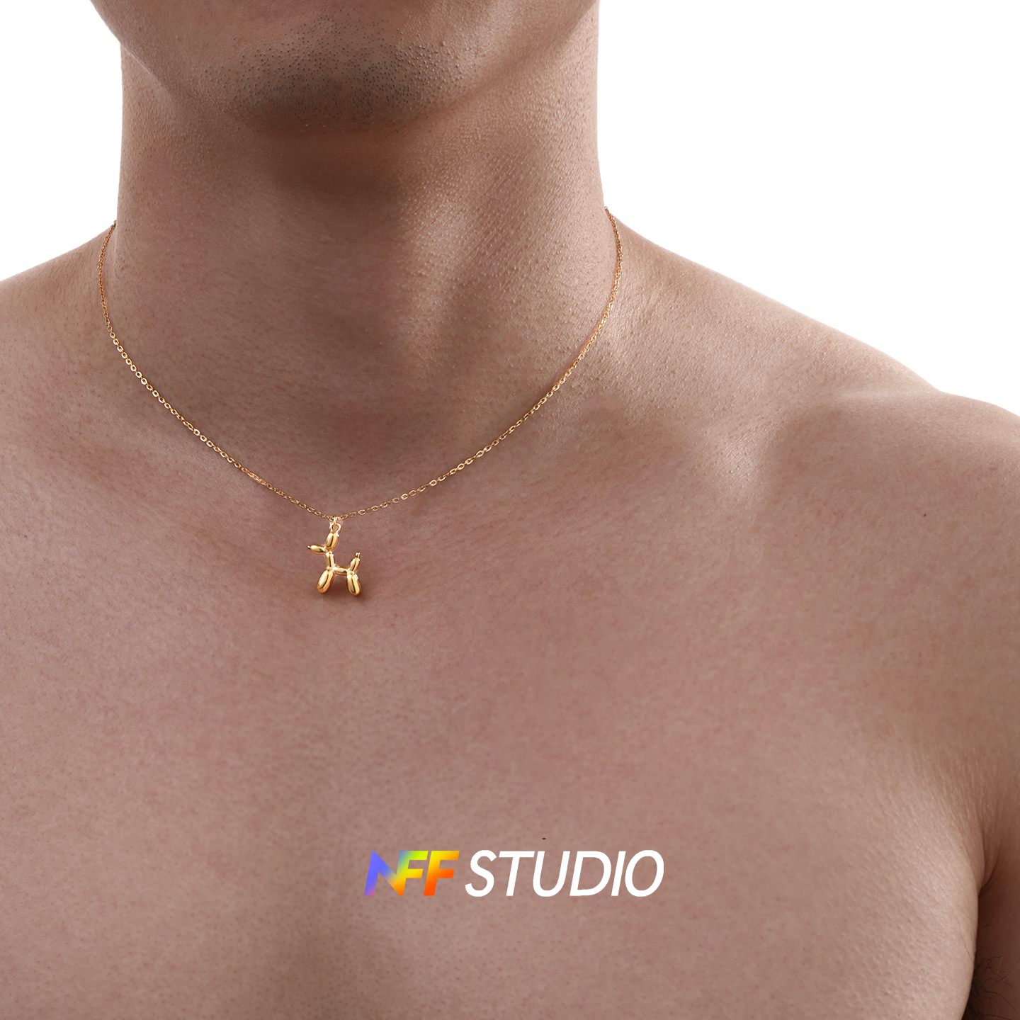 NFF气球狗钛钢镀18k金项链男女锁骨链轻奢小众设计感百搭毛衣链潮