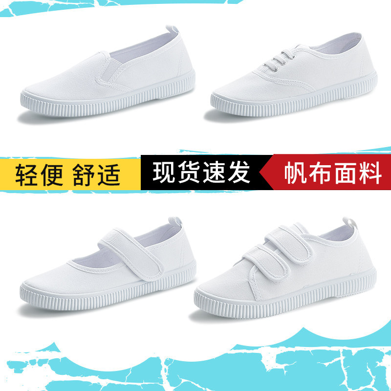 春秋季儿童帆布鞋小白鞋男学生女童白色布鞋宝宝幼儿园室内鞋大童