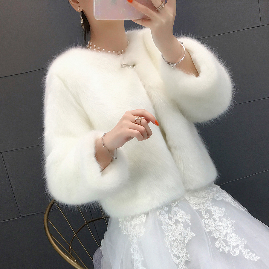 秋冬新娘婚纱长袖毛披肩结婚礼服披肩加厚保暖仿皮草女短款外套白