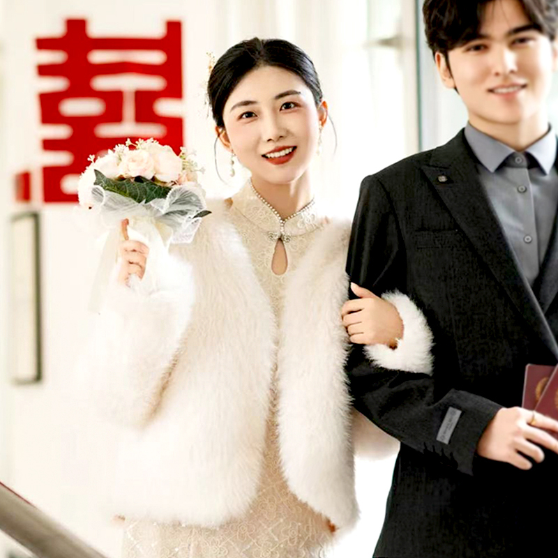 婚纱披肩冬新娘结婚礼白色加厚保暖小外套秋季伴娘礼服旗袍斗篷毛