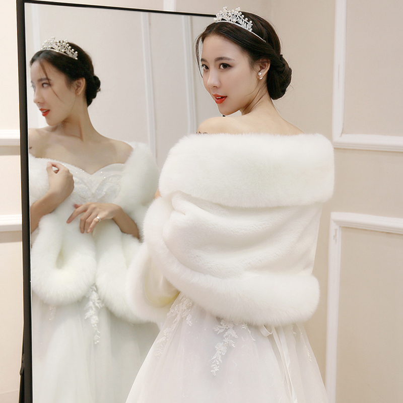 新娘结婚毛披肩婚纱披肩斗篷婚礼保暖披风白色开衫伴娘皮草外搭冬