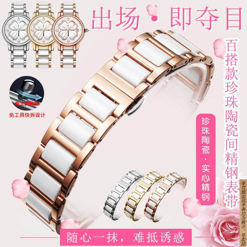 玫瑰金陶瓷表带男女情侣黑白精钢手表链代用天王芙丽天梭DW16 18