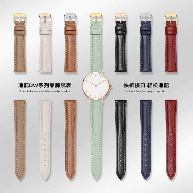 适配DW天王天梭卡西欧简约超薄软牛皮手表带多彩情侣腕带18mm20mm