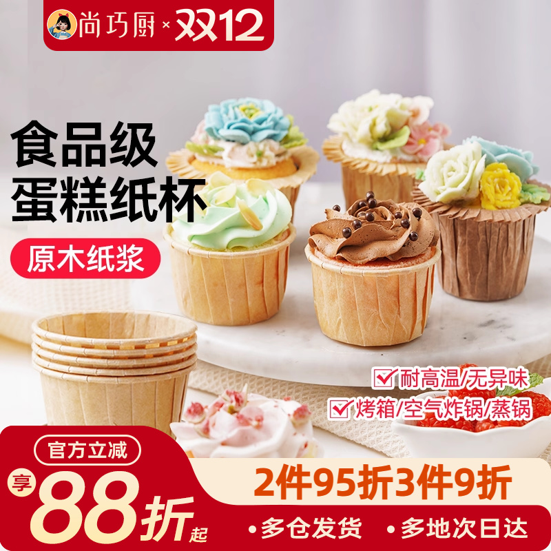 纸杯蛋糕杯子纸托蒸烤两用烘焙模具空气炸锅烤箱专用大耐高温马芬