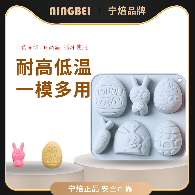 宁焙6连复活节兔子彩蛋硅胶冰格果冻DIY曲奇蛋糕烘培模具石膏滴胶