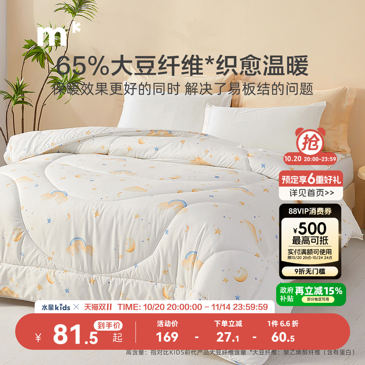 水星儿童大豆被芯母婴A类抗菌防螨子母被二合一被子冬被季春秋被