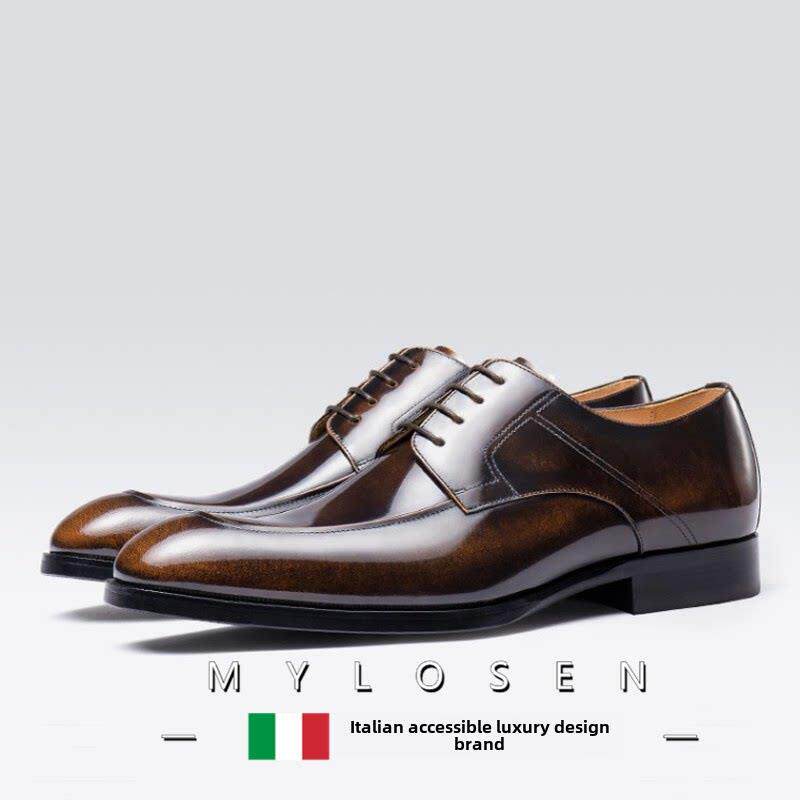 迈洛森春秋季新款商务正装皮鞋男尖头系带英伦男鞋手工黑色潮婚鞋