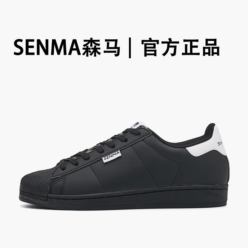 SENMA/森马复古贝壳头板鞋男女黑色系带休闲鞋百搭潮流运动鞋低帮