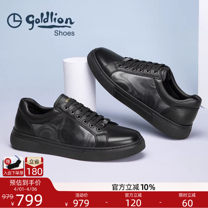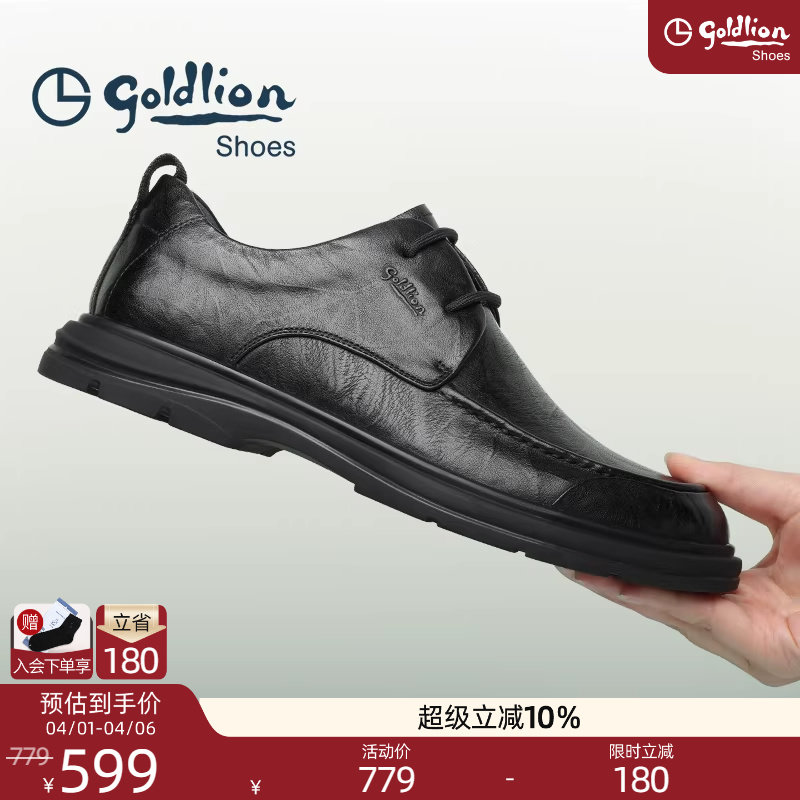 金利来男鞋2025休闲皮鞋男士黑色头层牛皮耐磨办公鞋运动系带皮鞋