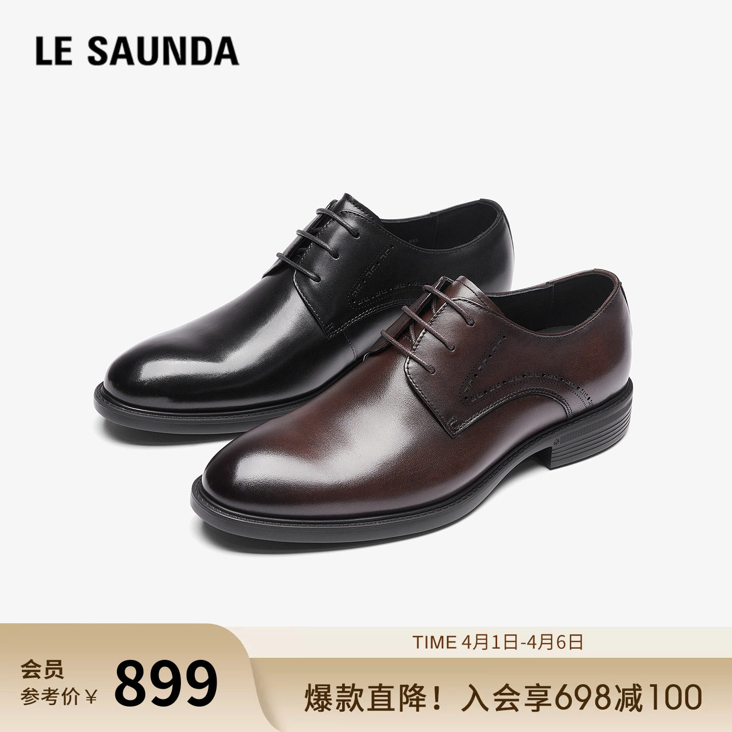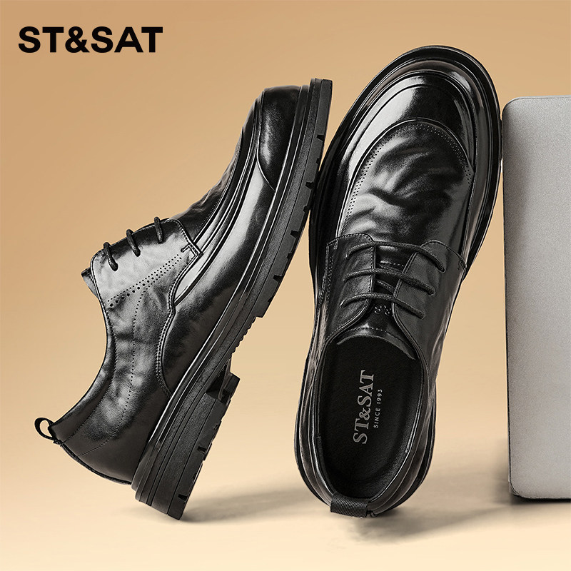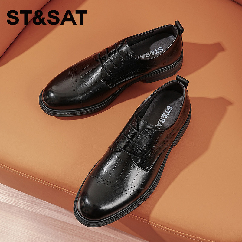 星期六2026新款春季男耐磨商务正装皮鞋黑色英伦风真皮系带休闲鞋