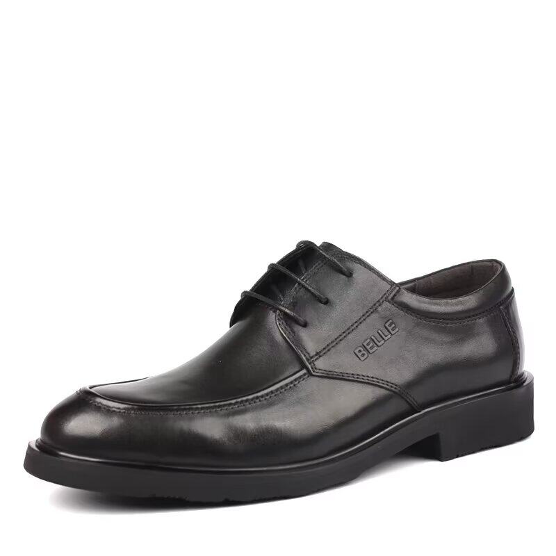 百丽男鞋真皮商务休闲耐磨皮鞋黑色圆头系带德比鞋英伦男士正装鞋