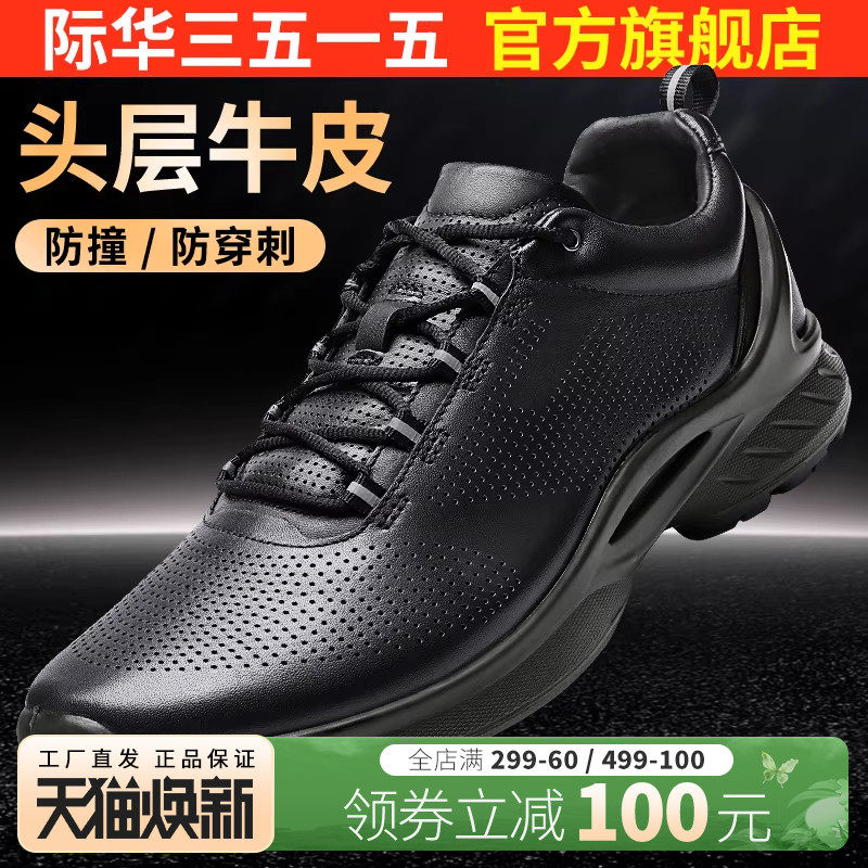 际华3515强人皮鞋男真皮透气跑步休闲鞋黑色防滑系带防穿刺男鞋子