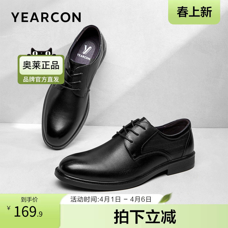 奥康新款男鞋厚底德比大头皮鞋男士软底黑色系带高级感商务正装鞋