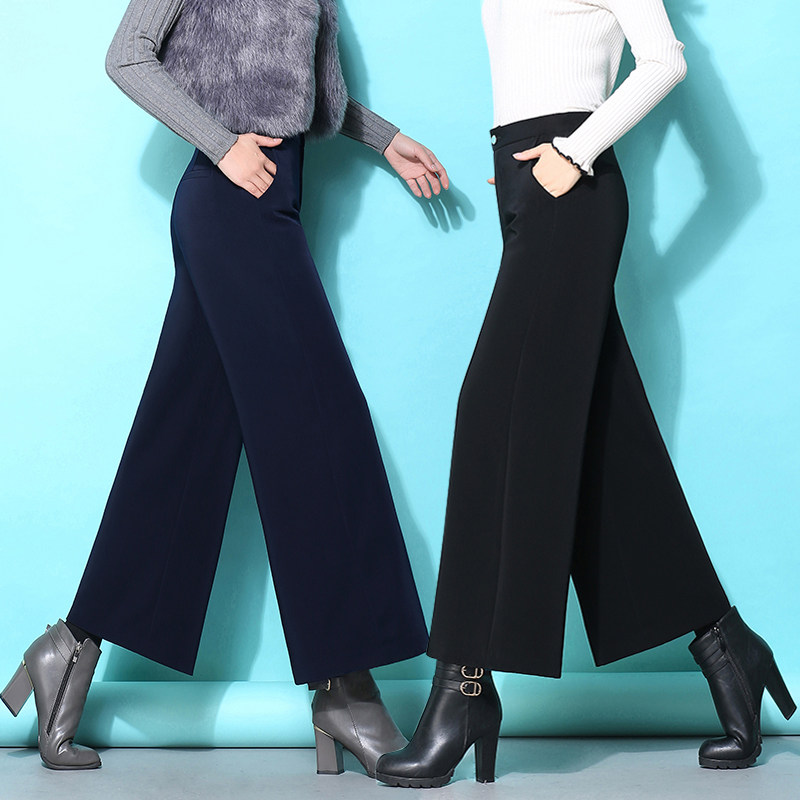 秋冬新款毛呢阔腿裤韩版加厚八分九分宽腿裤羊毛直筒裤冬大码胖mm