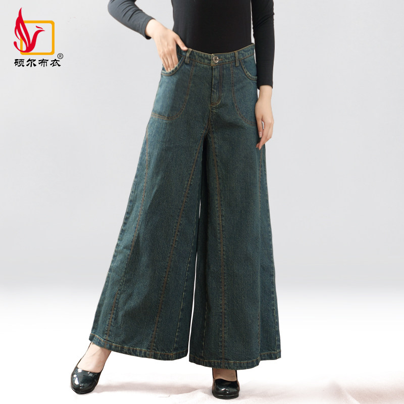 春秋新款大脚甩裤阔腿裤韩版休闲女裤收腹宽腿九分裤个性牛仔裙裤