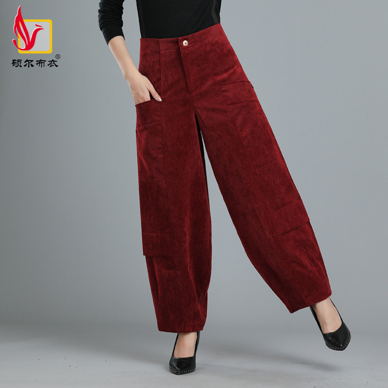 【断码清仓】灯芯绒萝卜裤高腰大码灯笼裤条绒宽腿九分裤休闲女裤