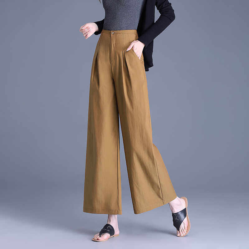 休闲阔腿裤女九分裤秋装宽松显瘦显腿长高腰垂感小个子八分宽腿裤