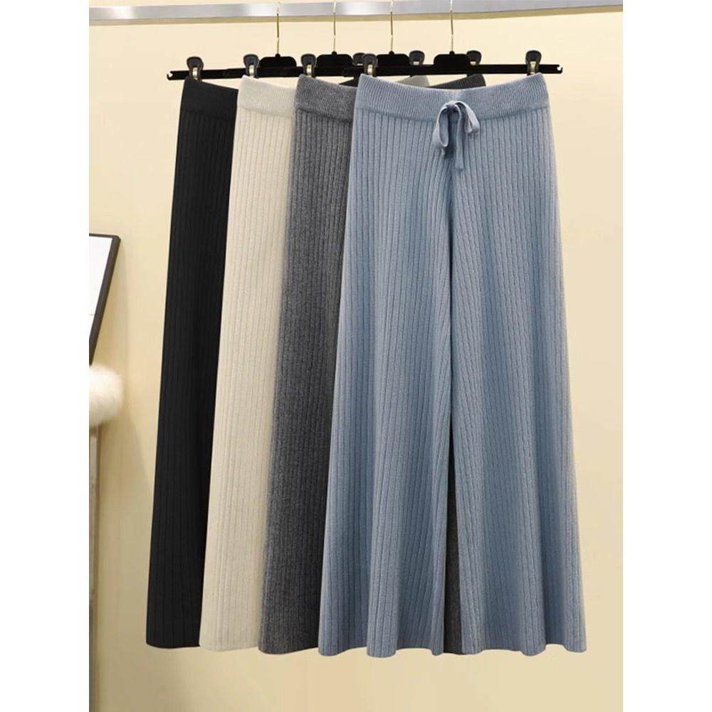 松紧腰针织阔腿裤女秋冬九分休闲直筒长裤宽腿垂坠感加厚毛线裤子