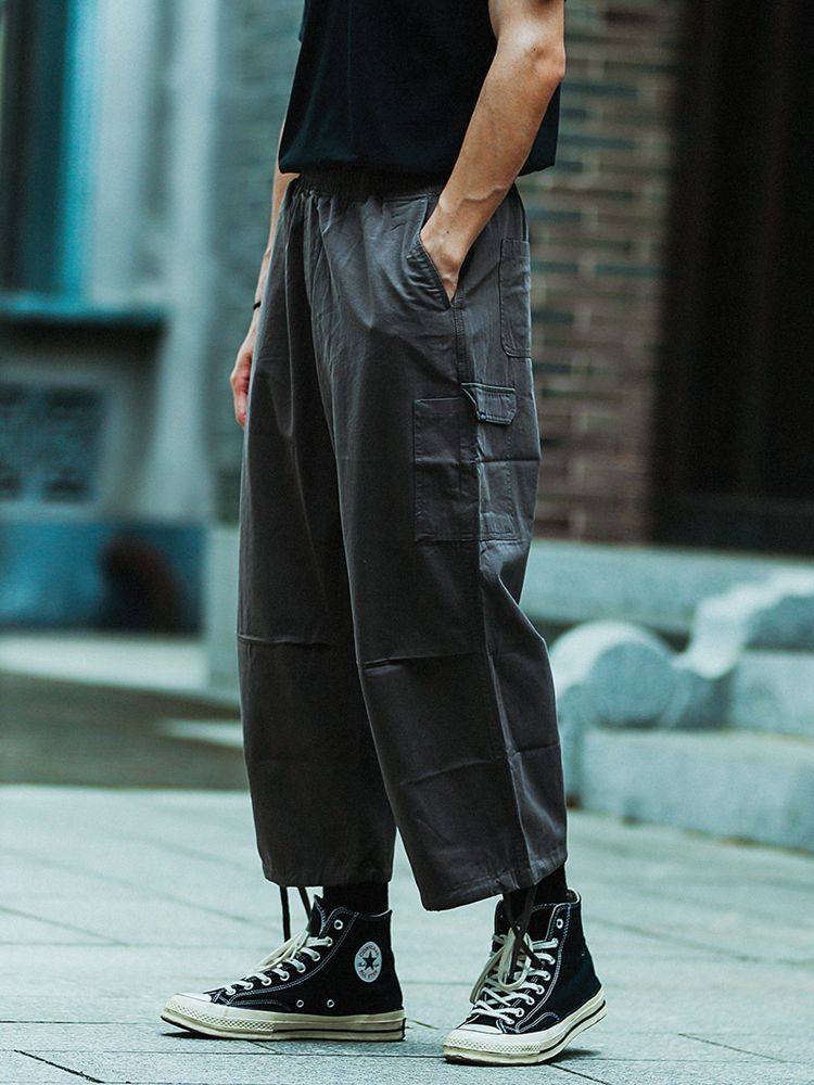 日系潮流阔腿裤男九分裤原宿bf风宽松青少年小脚工装裤 ins宽腿裤