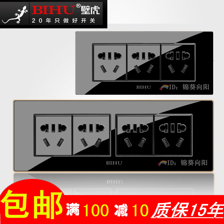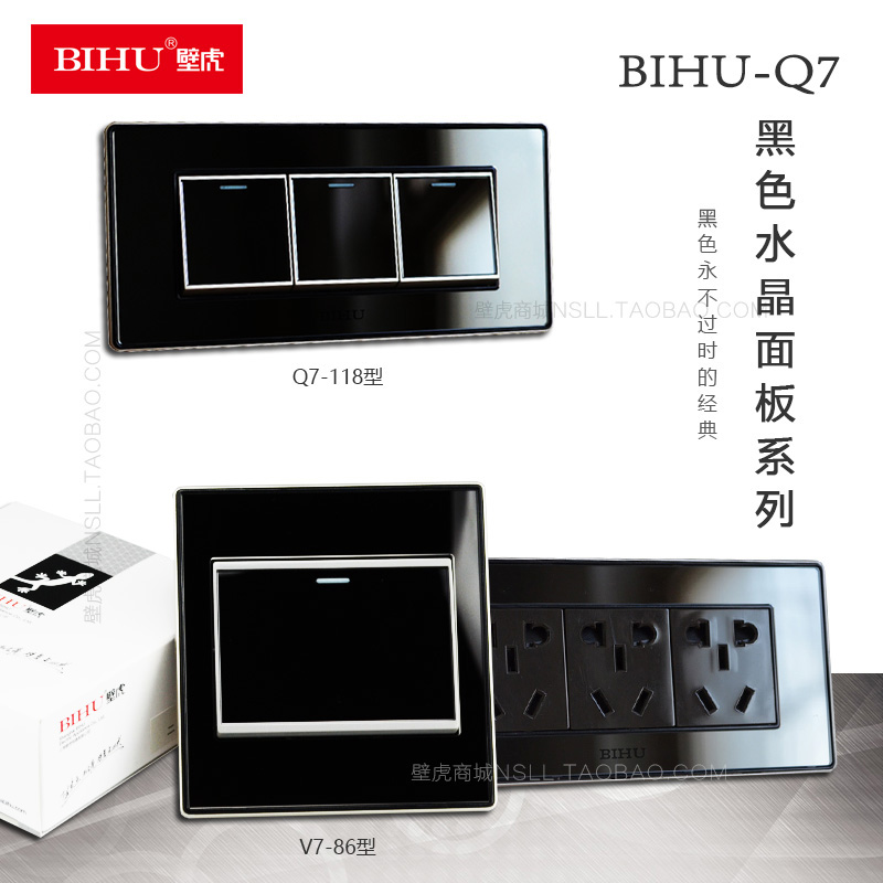 BIHU壁虎开关插座套餐 水晶插座面板 有机玻璃黑色镜面五孔一开V7