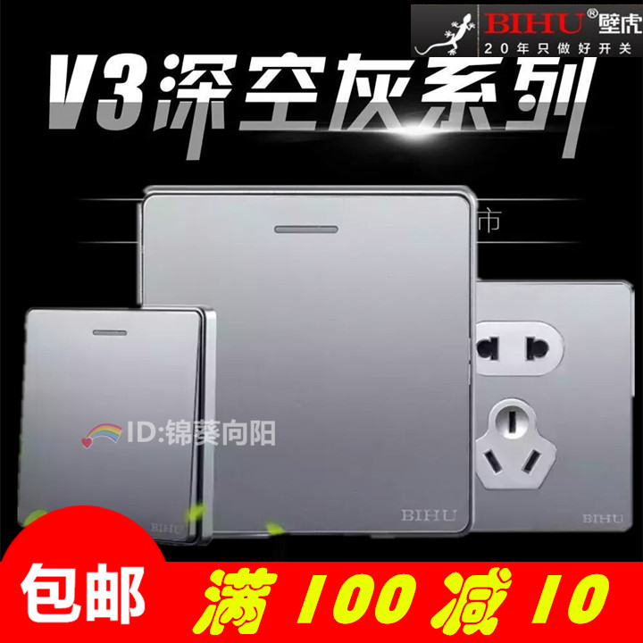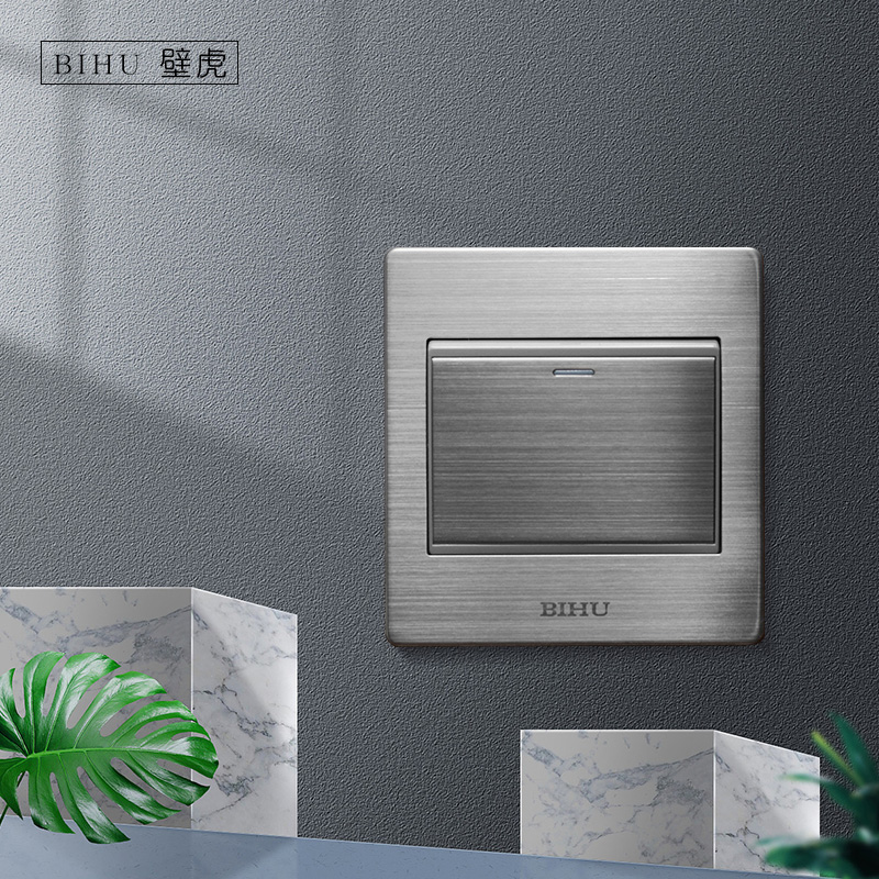金属灰色开关插座不锈钢拉丝86型BIHU壁虎单联家用墙壁五孔面板