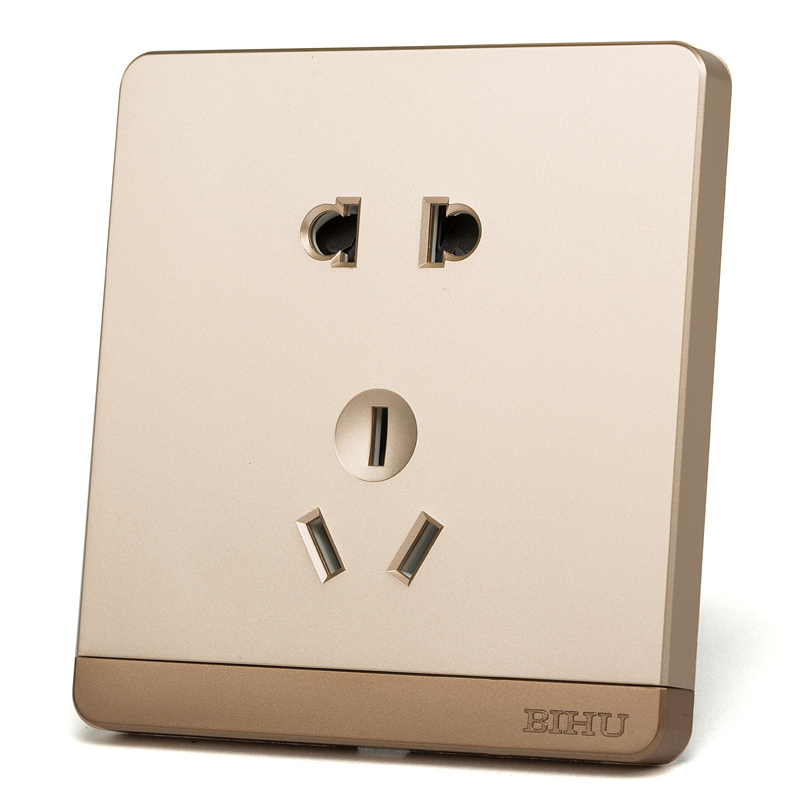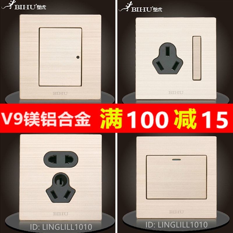 BIHU壁虎开关插座套餐 铝镁合金拉丝面板 金色香槟色五孔 一开 V9