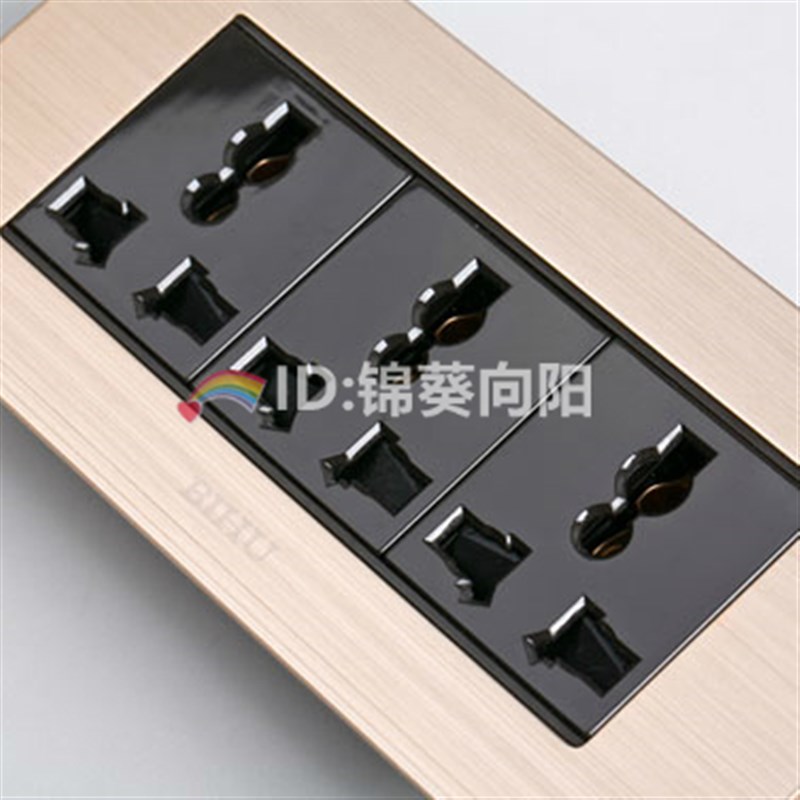 壁虎开关插座套餐 镁铝合金拉丝插座面板 香槟色 金色 五孔一开V9