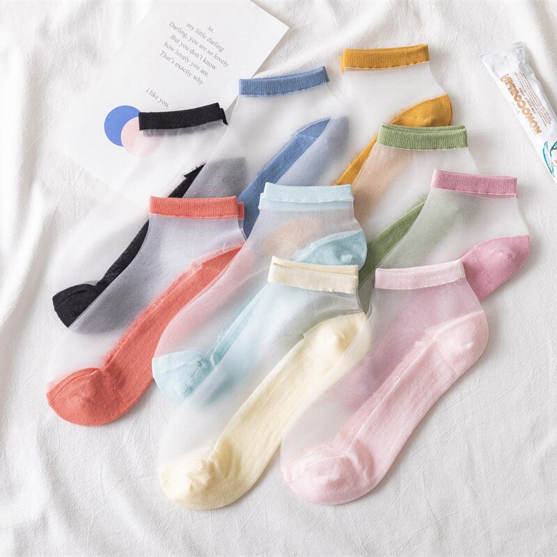 水晶袜子女玻璃丝短袜女夏季薄款透明纯棉底透气女袜潮网红款夏天