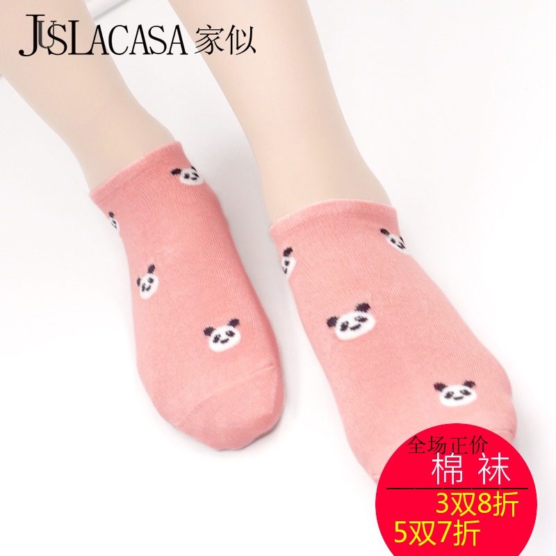 家似夏季薄款熊猫提花船袜浅口隐形吸汗透气可爱清新桑蚕丝短袜女