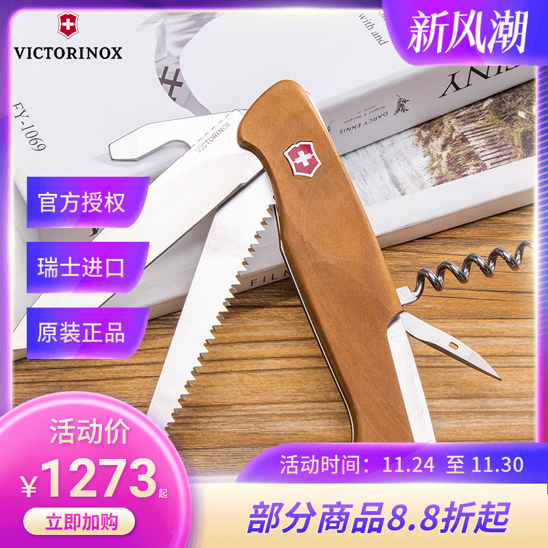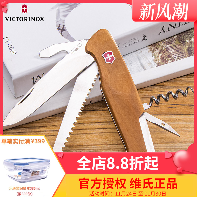 维氏瑞士军士刀新骑士-原木55 130mm户外多功能刀具正品0.9561.63