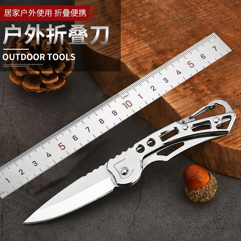 不锈钢户外快开多功能折叠刀钥匙扣随身便携锋利刀具全钢家用水果