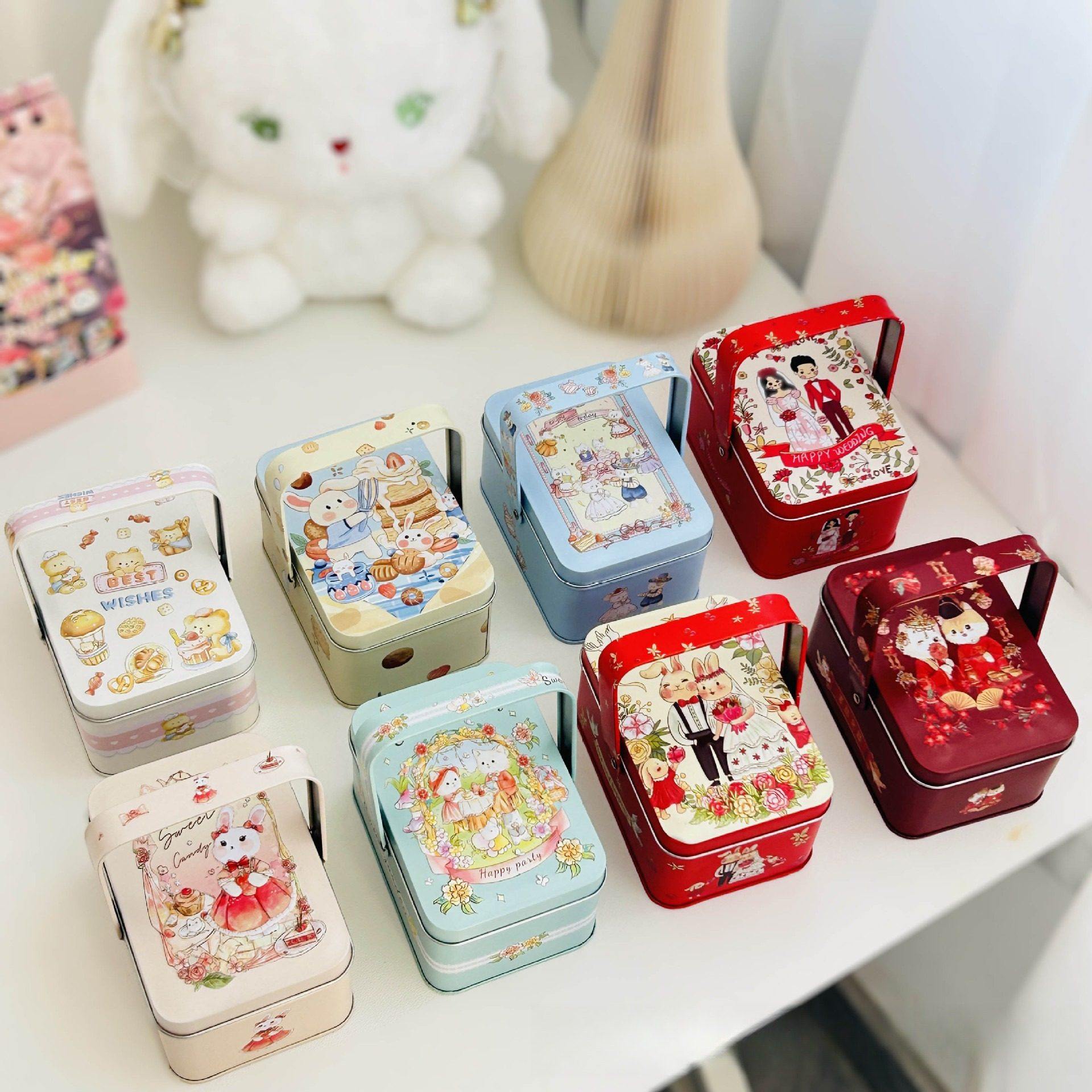 收纳铁盒子长方形迷你小手提马口铁带盖精致可爱喜糖果盒储物杂物