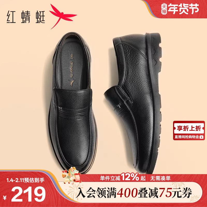 红蜻蜓皮鞋男2025新款春秋舒适真皮软面男士软底中老年休闲爸爸鞋