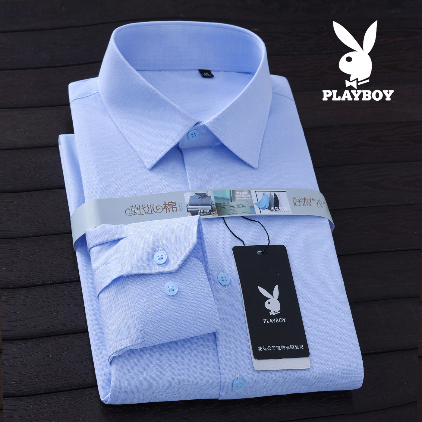 【200支4股DP免烫】花花公子衬衫男士长袖商务高档正装长袖白衬衣