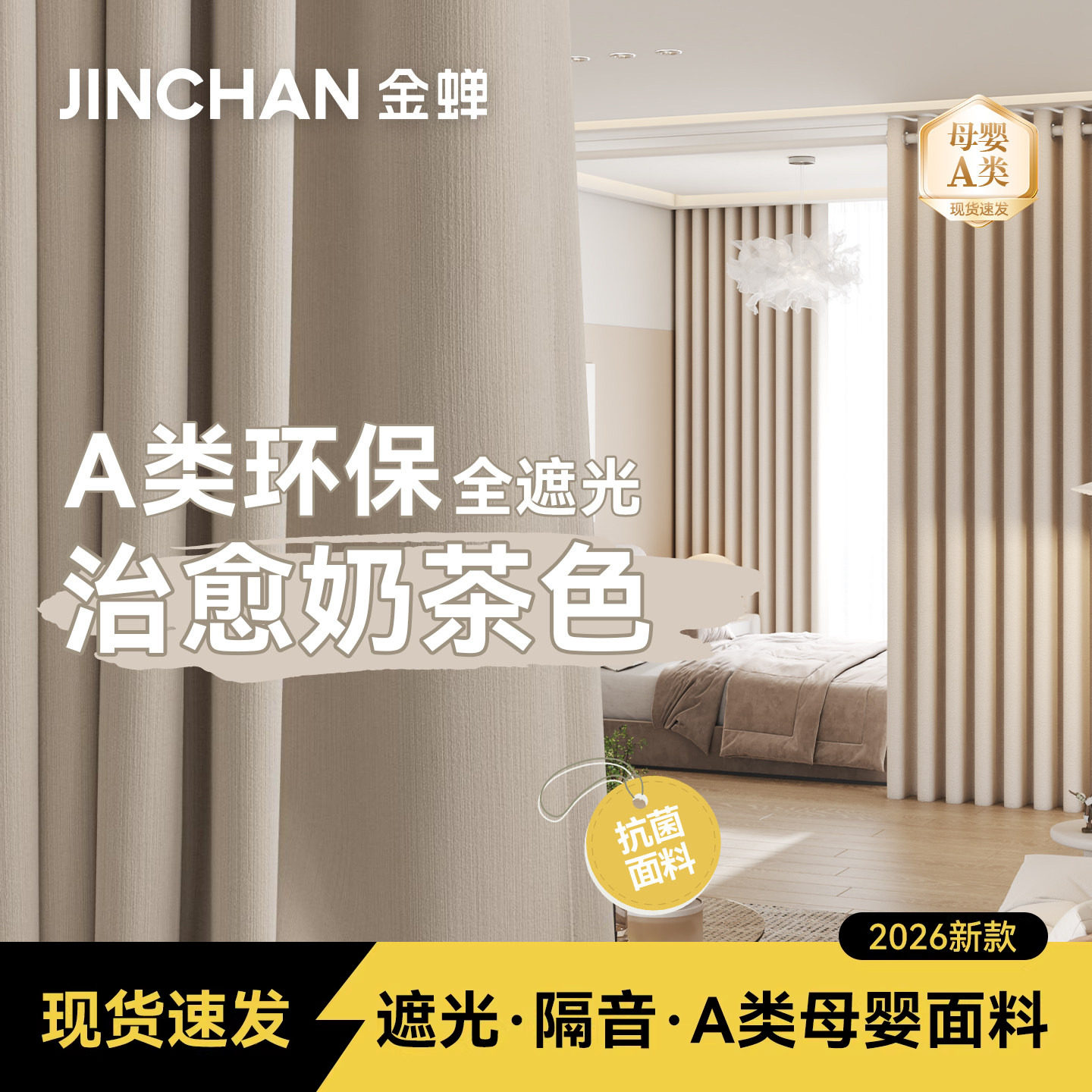 金蝉遮光2026新款免打孔安装飘窗隔音杆一整套卧室出租房挂钩式布