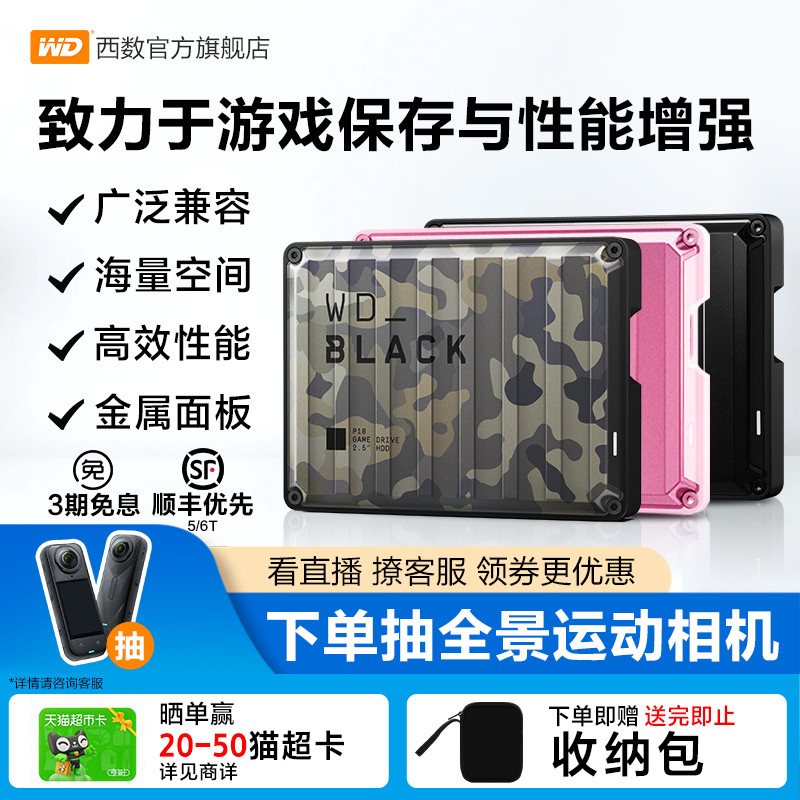 WDBLACK西数P10移动硬盘2t大容量6t ps4外置外接pc电脑4t游戏5T