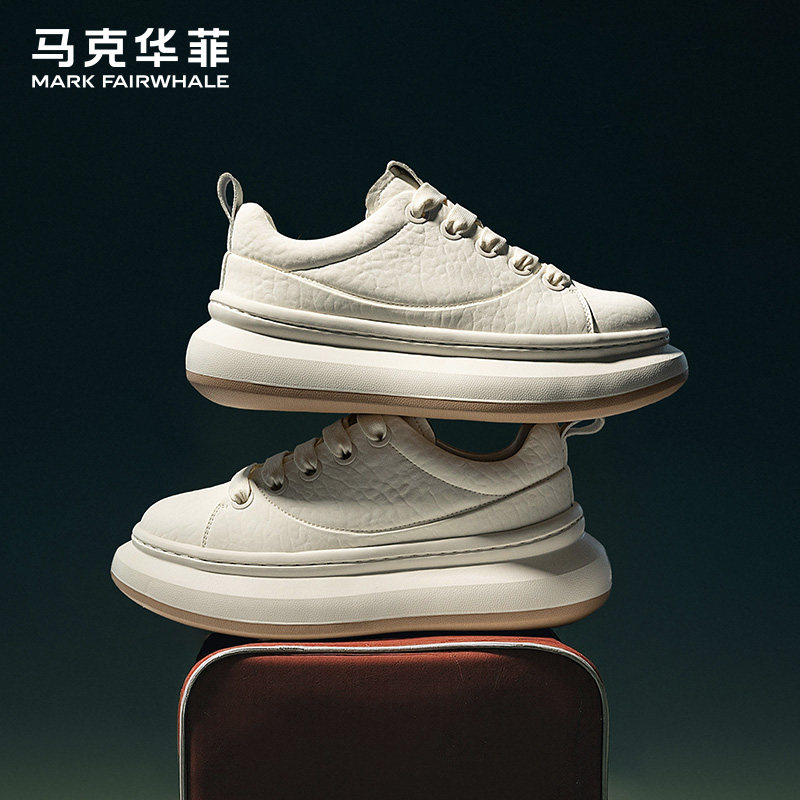 真皮麦昆厚底小白鞋男透气轻便减震休闲运动鞋子头层牛皮潮流板鞋