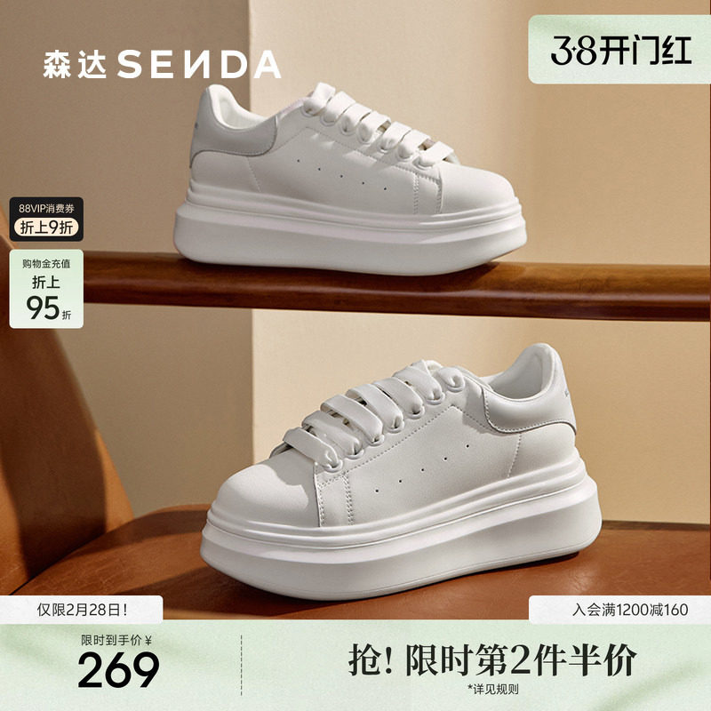 森达板鞋女款2025新款商场同款麦昆厚底显高户外休闲小白鞋XKS01