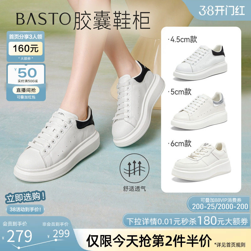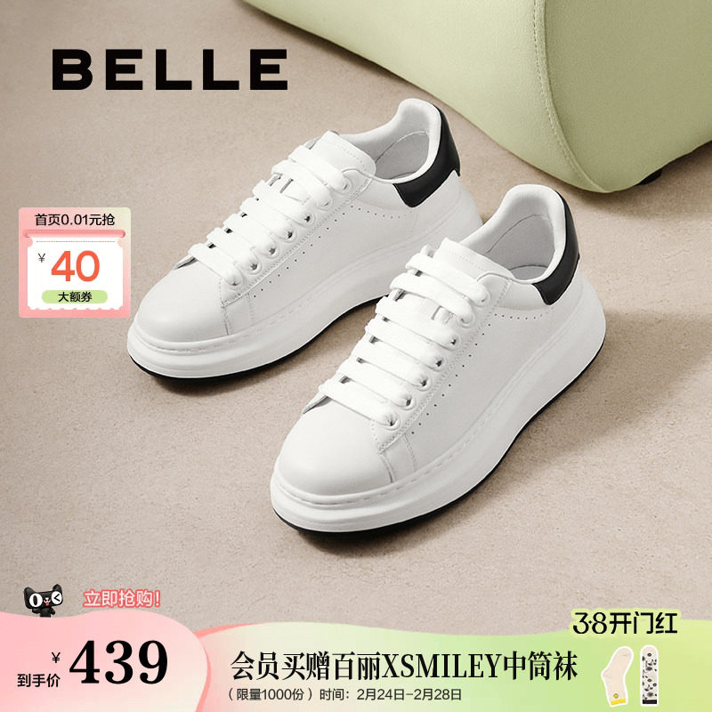 【胶囊鞋柜】百思图26春新款松糕厚底麦昆小白鞋运动休闲板鞋女鞋