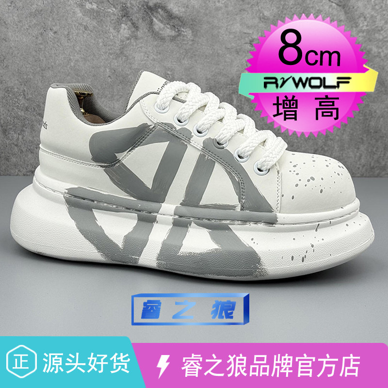 麦昆小白鞋男款秋厚底内增高10CM超火小众设计感面包大头休闲板鞋