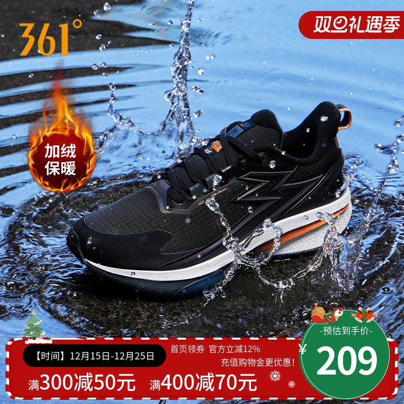 361雨屏8.0跑步鞋男鞋冬季防泼水加绒运动鞋雨天通勤黑色减震跑鞋