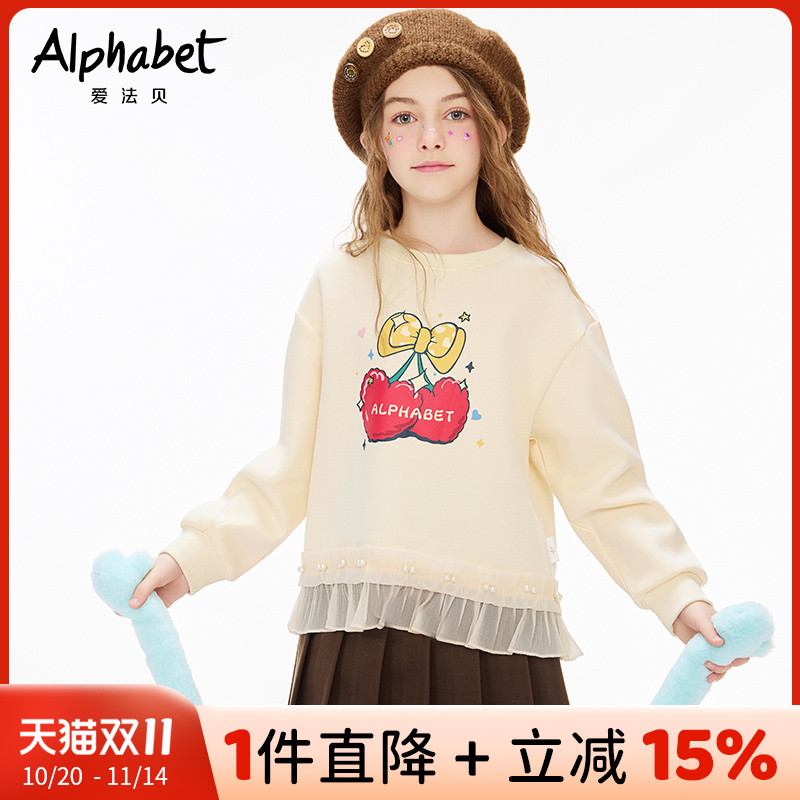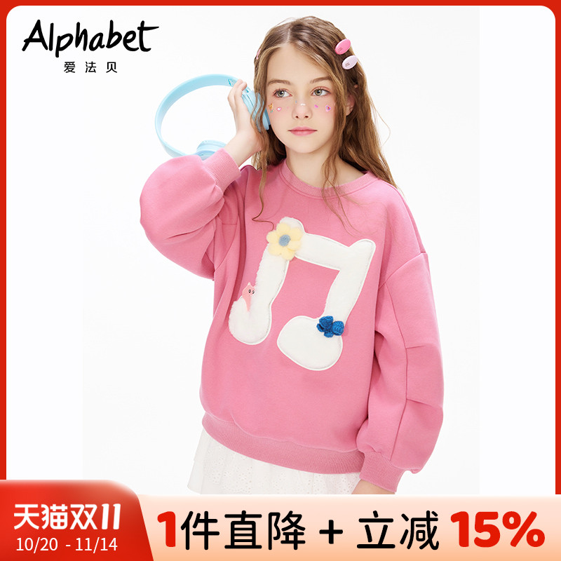 爱法贝2025秋新款女童卫衣儿童套头衫中大童学生甜美洋气圆领上衣
